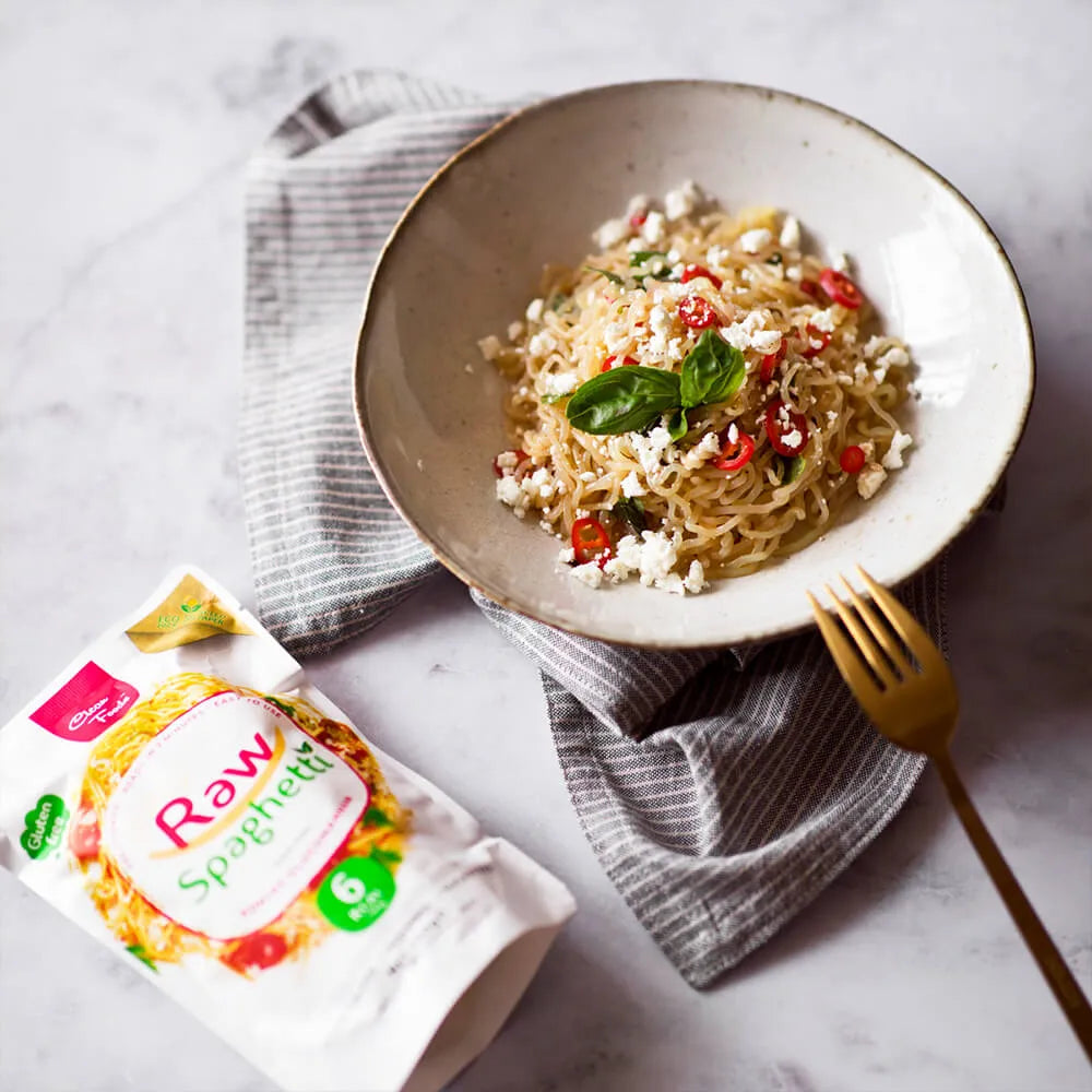 RawPasta ist frei von Fett, Gluten und Zucker und enthält nur 6 kcal pro 100 Gramm Nudeln.